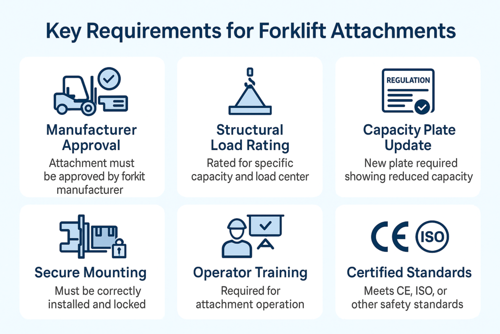 What are the requirements for a forklift attachment?